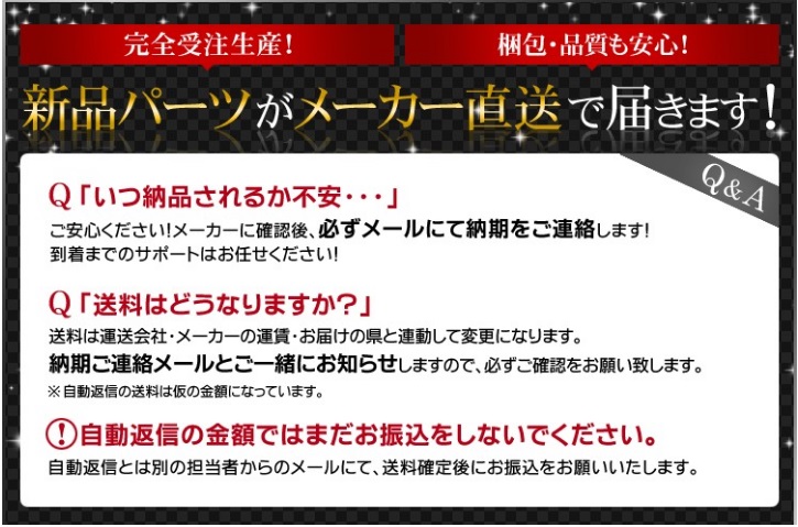注:自動返信とは別に担当者からメールにて送料・納期をご連絡をいたしますので、お手数ですがそちらでご確認をお願いいたします。
